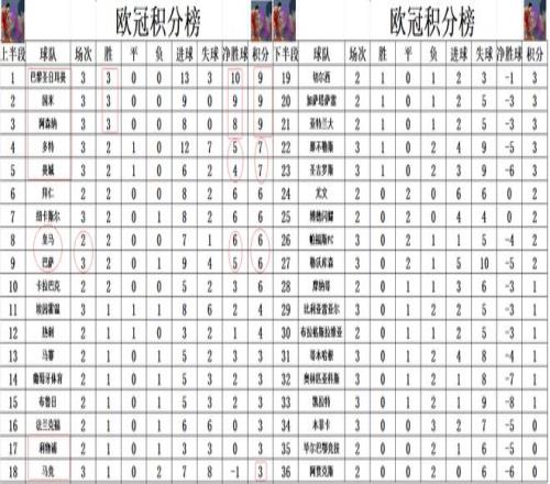 积分榜方面,巴黎,国米和阿森纳继续保持全胜,而且今天三队还都是“狂刷”净胜球,巴黎刷了5个净胜球,他们就凭借1个净胜球优势继续力压国米领跑,阿森纳差国米1个净胜球排在第3。巴萨狂胜止住颓势后,差皇马1个净胜球排在第9,多特,曼城2胜1平保持不败,排在第4,第5。