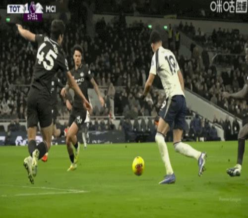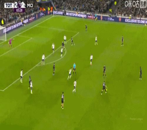 第44分钟,B席禁区内横传,塞门约轻松抽射破门,曼城2-0热刺