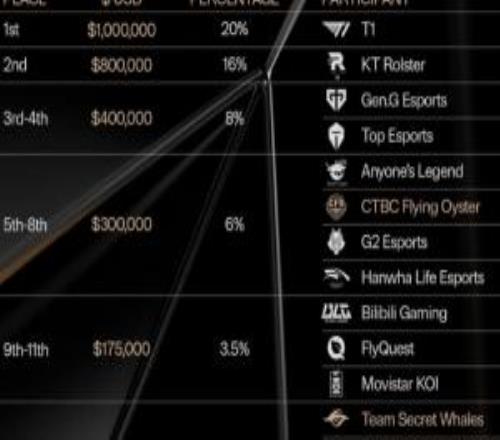 有点少!S15全球总决赛奖金分配:T1一百万美元居首IG七万五千美元