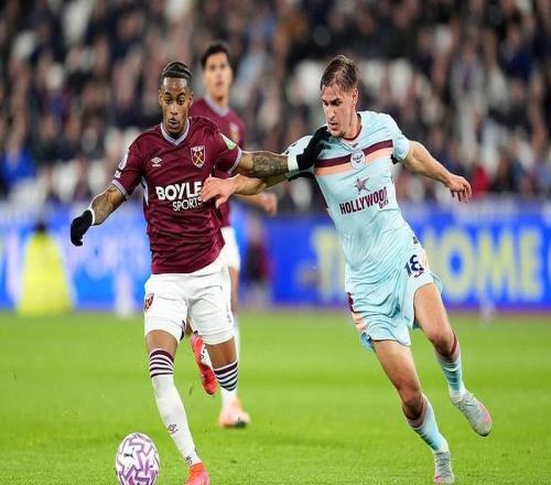 北京时间10月21日凌晨,英超第8轮,西汉姆联坐镇主场迎战布伦特福德。比赛中。视觉中国图上半场第43分钟,亚尔莫柳克后场送出长传,沙德无私做球,蒂亚戈迎球射门得手,布伦特福德1比0